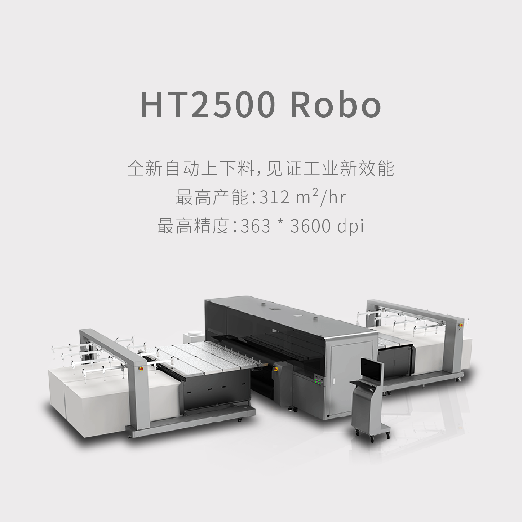 全新紡織印花導(dǎo)帶直噴機(jī)最高產(chǎn)能:1786㎡/hr 滿配64個工業(yè)級噴頭